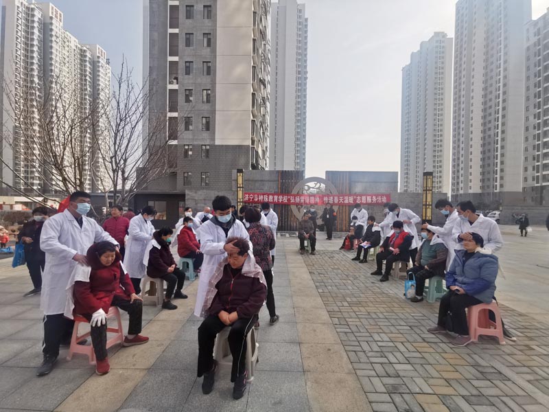 此次活动由党总支书记张大蔚同志带队,4名校级领导、6名党员教师和视障职业班12名团员学生参加。党员教师和共青团员为社区群众进行一对一的义务按摩服务,及时询问居民身体健康状况,经过学生初诊、教师复诊,发现十余名居民颈椎、肩部有轻微症状,现场进行了推拿按摩,有效缓解了病痛。党员志愿者对居民们的健康咨询有针对性的给予保健建议,服务活动时间2个小时,服务居民群众70余名。
